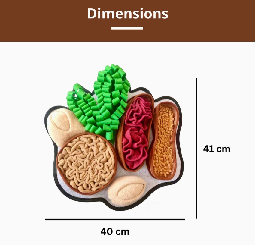 Who does not love peanut butter ? Inspired by our chonky dogs, this design provides the required complexity in enrichment for our smaller fur friends like bunnies, cats, ferrets, hedgehogs, chinchillas, ducks and similar. With plenty of place to hide treats / dog food with different materials to add a sensory dimension to the enrichment, this mat will soon become a favourite with your fur friend! And what's better? The peanuts have squeakers too. Let's give our pups a superior snuffling experience with the chonky peanuts snuffle mat! 🥜🐶❤️